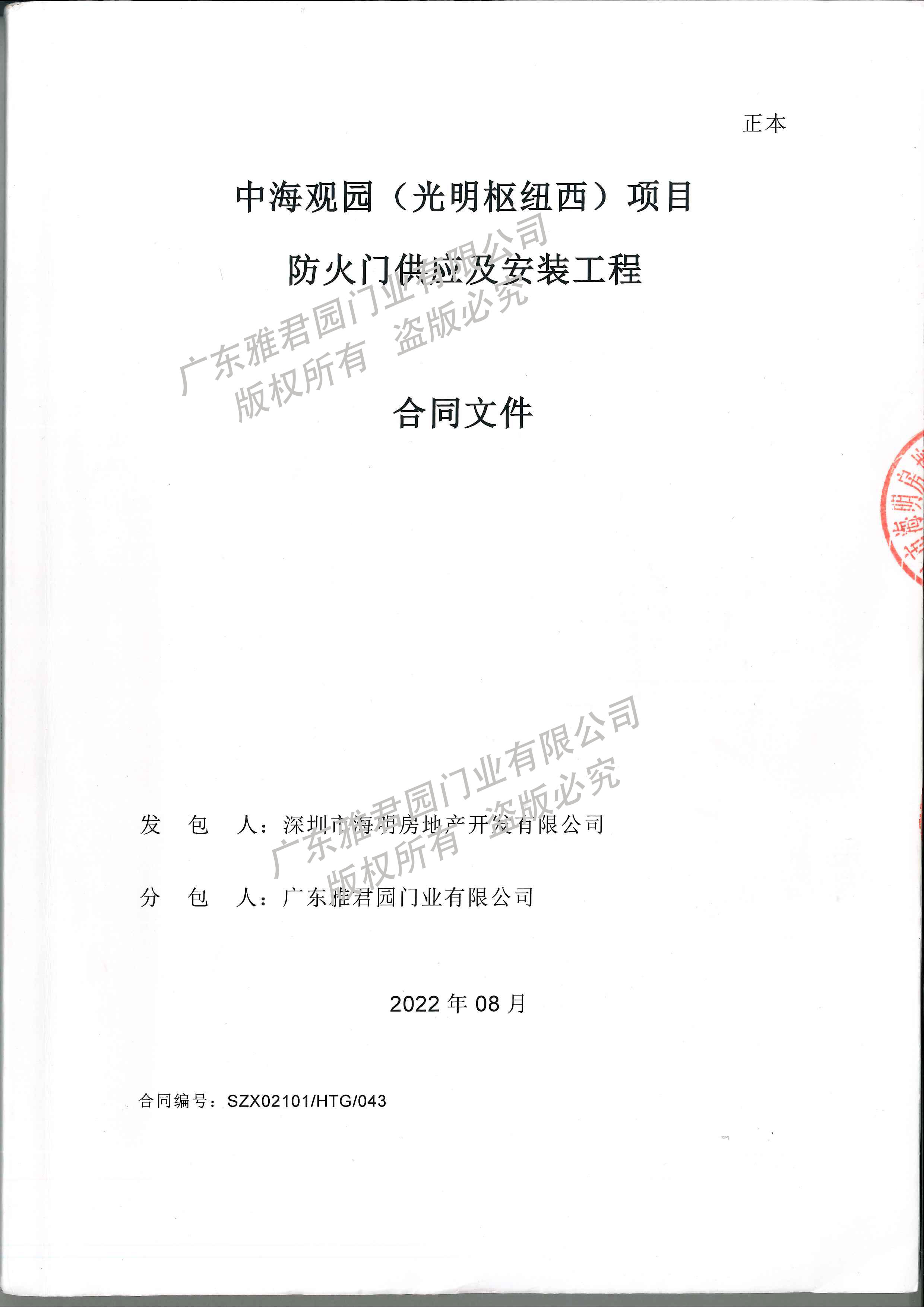 廣東雅君園門業(yè)有限公司是專業(yè)設計、生產、安裝防火、防盜系列產品的大型股份制企業(yè)。雅君園現(xiàn)有廣州、新疆、湖北三大生產基地,公司現(xiàn)有員工800多人,現(xiàn)代化廠房6萬平方米,大批進口設備和生產流水線,計算機網絡管理系統(tǒng)和高素質的管理隊伍,形成了年產20萬樘各類門的生產能力。在廣東省、海南、湖南、廣西、新疆等地具有很高的行業(yè)知名度和美譽度。主導產品安裝防火門、防火卷簾門、防火玻璃門、防盜門、防火玻璃構件、防火防盜門、裝甲防撬門、復合防盜門、格柵門、室內門、車庫門、自動伸縮門、自動感應門、防火卷簾電控箱、常開防火門自動關閉控制器、不銹鋼制品和鋁合金制品等十大系列上百個品種。